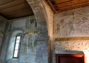 The town’s landmark, the old church, is hiding in a small square, surrounded by small houses. Its interior is decorated in a striking blue color.