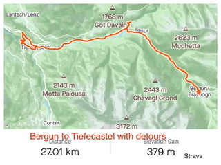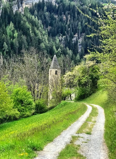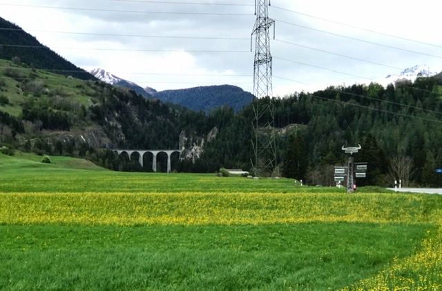 If times allows, with a little detour from the cycling path (3km from Bergun and 200m elevation) one can visit the Romanesque church of St. Johannes in Stuls ( https://www.schweizmobil.ch/en/sehenswuerdigkeit-0583.html ). It is supposed to have beautiful 14th century frescoes painted by the school of Giotto but it was too late for us to venture there.