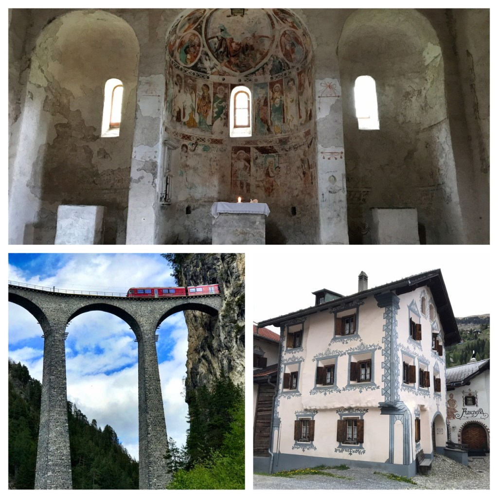 Highlights: UNESCO Viaducts of the Rhaetian Railway (Solis Viaduct and the most photographed Landwasser Viaduct), the Carolingian church of St. Peter in Mistail , the church of St. Johannes in Stuls (not visited) , and the old village of Bergun with 16th-17th century houses decorated with the typical “sgraffiti”.