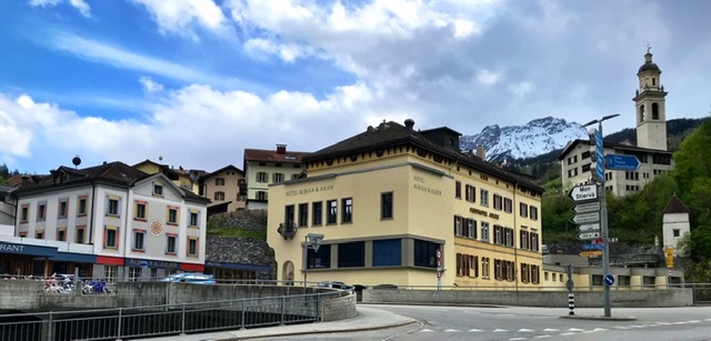 With the uncertain May weather, we booked our first Hotel in Tiefencastel situated in the middle of Bike Route 6:02, and at the intersection between the roads over the Albulapass and the Julierpass.