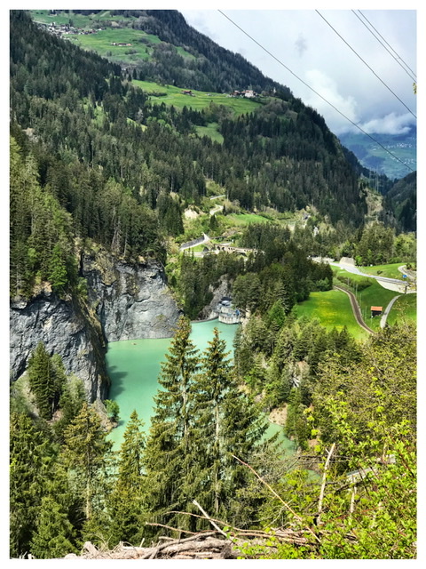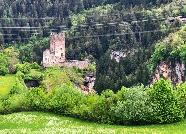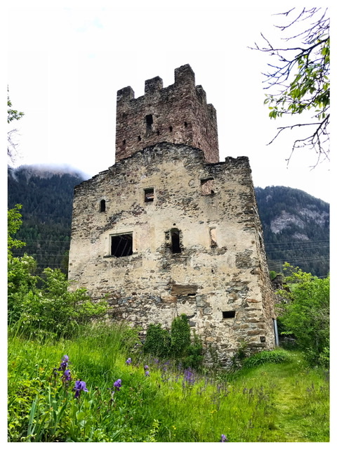 Just before Thusis, the ruins of Campell Castle right on the gorge precipice, come into sight (https://en.wikipedia.org/wiki/Campell_Castle), and this of course called for a little sightseeing into the hamlet of Campi.