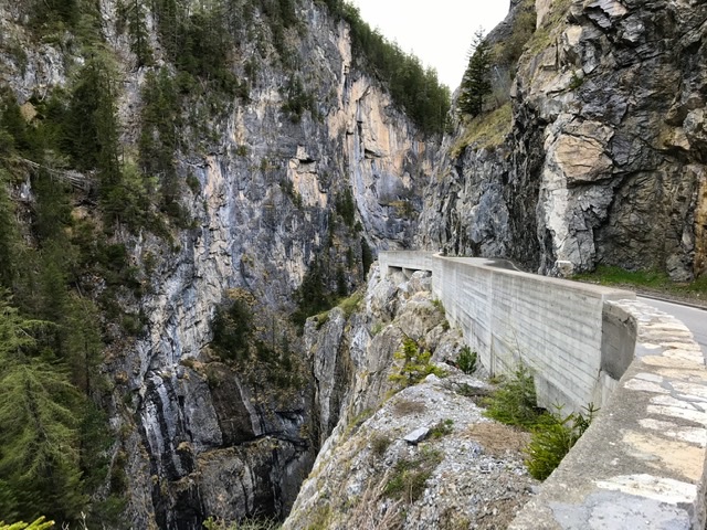 The most spectacular stretch is just below Bergun with the narrow passage between vertical rocks on the Gorge at Igl Crap.