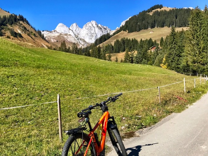 From Jaun the road continues through a narrow valley along the stream La Jogne until Charmey. Incidentally, this is also a great trail for cross-country skiing in winter.