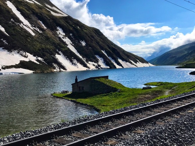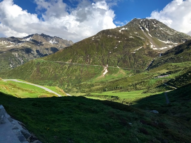 And so, after a 5-hour train journey, here I go, starting in late afternoon the 600m elevation climb along 10km of hairpin bends, from Andermatt to the top of the Oberalp Pass/Lake at 2044m.