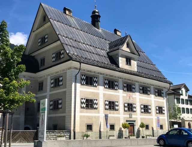 Continuing along the Rhine, next village is Trun ( http://www.myswitzerland.com/en-ch/trun.html ). Here it is important to detour into the village since Route 2 passes on the opposite side of the railway . Trun is historically very important. It is where the «Graue Bund» (Grey League) was founded in 1424 (one of the three leagues that made up the Canton Graubünden ). We can still see the building where the Grey League used to meet, which now houses a museum.
