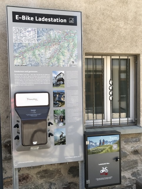 Passing through Ilanz (http://www.myswitzerland.com/en-ch/ilanz.html) again it is important to detour into the town. The historic center has many 16th and 17th century buildings as well two decorated town gates. Important for e-bikers, a charging station with several types of cables can be found in its historic center.