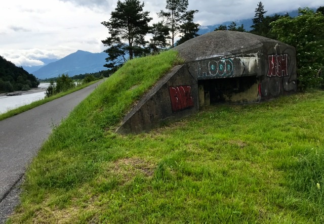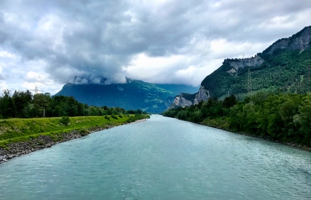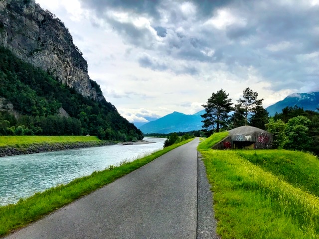 From Sargans (which is off-path and covered in Route 9:9) to Buchs, the trail continues along the Rhine, in full view of Liechtenstein and its capital Vaduz at the foot of high mountains. Indeed, here the river marks the border between the 2 countries, and several bridges allow tourists to hop to the other side.