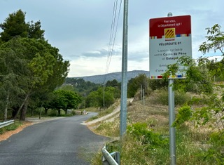 At least the route is very well maintained (part of it is on a small country road). They are creating a new veloroute, V81, and so this section is really nice. And the landscape is beautifully wild, in the heart of rough Cathar country (Pays Cathare ), with the backdrop of the Pyrenees grey peaks.