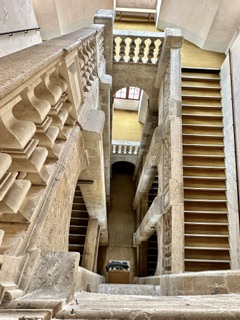 Indeed, the dramatic stop in construction of this imposing building is well visible at the back of the Cathedral. Here, looking up at the incredibly tall sides of the courtyard and feeling dwarfed by them, one wonders what happened to the project ! Maybe it was stopped by the bubonic plague or maybe by a change in fortunes.