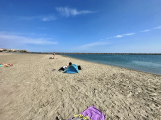 Our Hotel in Sete is right on the beach. And, as soon as we check-in we dive into the water! So refreshing after a long biking day! But, yes, the sea is still very cold this time of the year, probably around 16C.