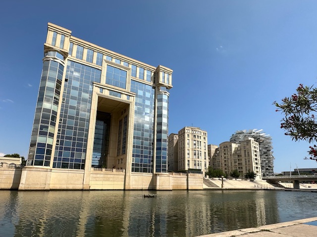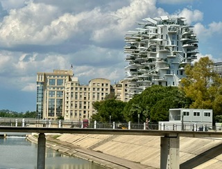 This is the longest biking day of the trip, starting with a detour into MONTPELLIER. The suburban area immediately draws our attention with phenomenal modern architecture and parks all around. It looks like a wonderful city.