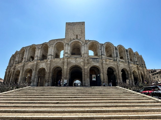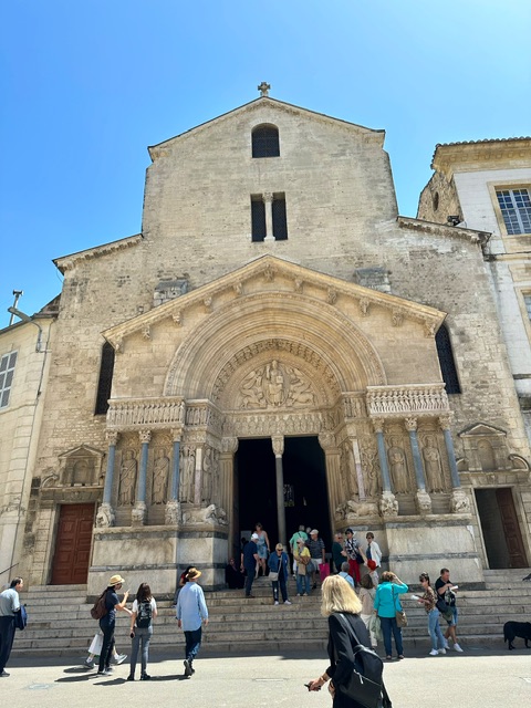 We reach the Roman town of Arles just in time for our lunch break. We wander the narrow alleys of the old quarters until we reach two main landmarks: the Romanesque church of St Trophime and the Roman amphitheater.