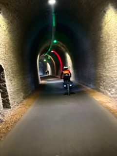 We return on the EV17 path, this time using a Voie Verte repurposed old train route, complete with lit up original tunnels.