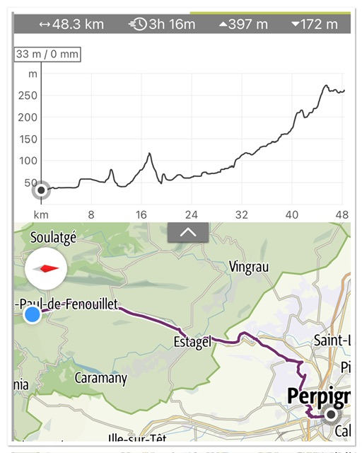 DAY 1 /1st day biking (Perpignan to St Paul de Fenoulliet): 48km, +400m elevation gain