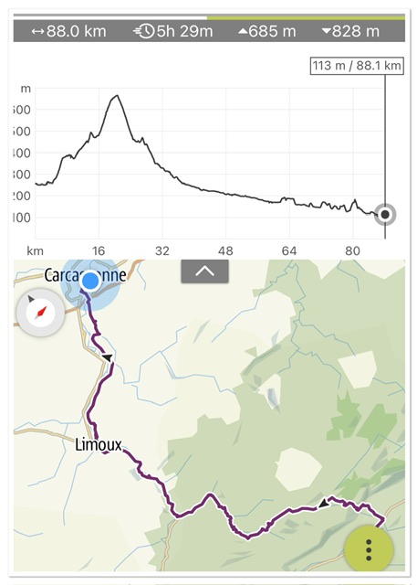 DAY 2/ /2nd day biking (St Paul de Fenoulliet to Carcassonne): 88km, +700m gain