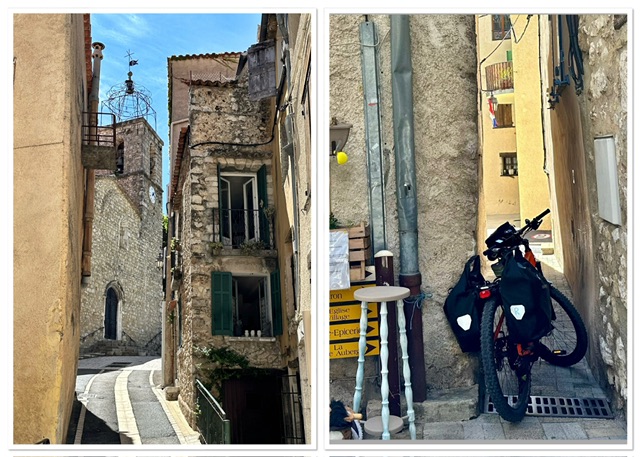 The bike departure point of the trip is Grasse, easily reached by TER train, with free bike transport. The old Grasse, at 350m, is perched above the newly developed town, indeed quite a hike from the train station. The main tourist attraction of Grasse is its Parfumerie Fragonard. However, the old town, the many little tourist shops and the beautiful panoramic views are also worth a look.