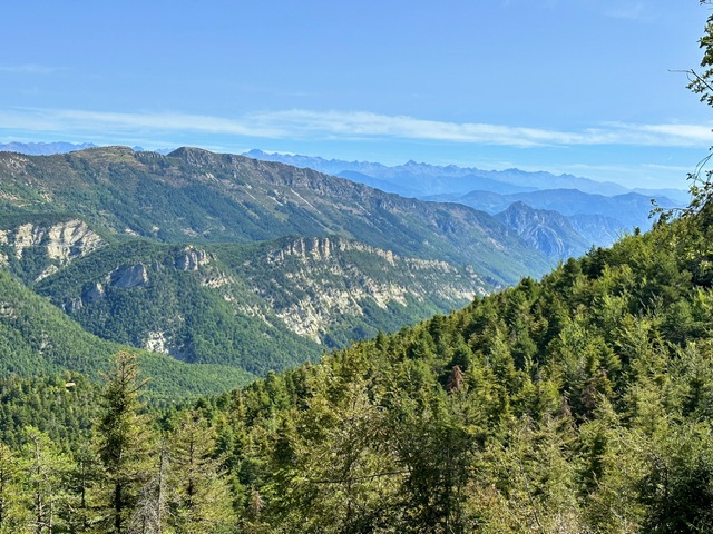 Then we plunge into a fantastic descent of 25km through the forest of Saint Auban, with panoramic views all the way to the Alps.