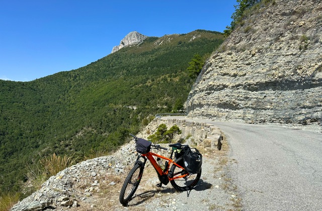 Well, lounging by the seaside is not our thing anymore, especially in the tourist-packed region of the Côte d’Azur. But just inland there are vast mountainous areas, with very little population, infrequent villages, and amazing scenery. And so we evaded for a little bike tour in the Regional Park of the Prealps d’Azur.