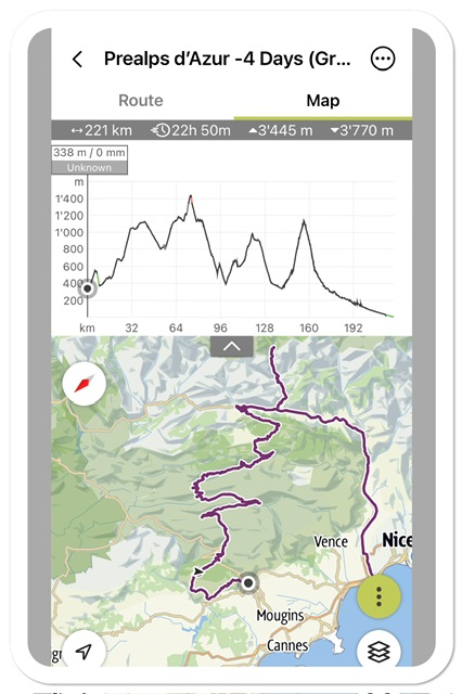 At the end, after a very long day with 110km and 1,000m gain, we made it to the station in Villeneuve-Loubet at 8pm, right on time for our last train to our destination.