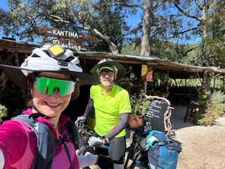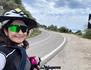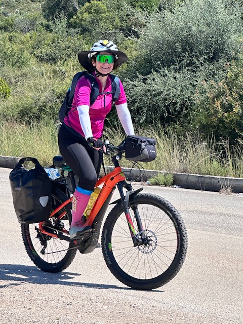 It is difficult to leave the paradise setting of Hotel Costa Smeralda, but after the bountiful buffet breakfast of Greek goodies, we finally push ourselves onto the bikes to go through one of the toughest days of the tour, this time unfortunately under a cloudless sky (but we are fully covered head-to-toe with the extra sombrero-helmet 😜).