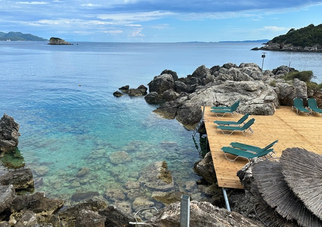 Luckily the lodging I booked turned out to be better than expected, with villa-style apartments on a magnificent rocky cliff overlooking a small bay,….. paradise.