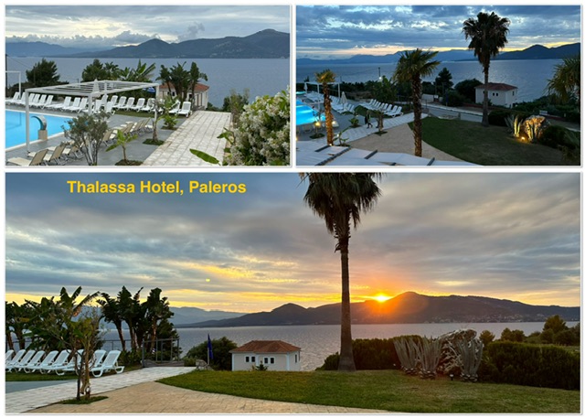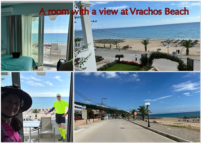 At last we reach our hotel on a vast stretch of sandy coast in Vrachos Beach along a strip of beach bars, restaurants and various vacation accommodations. It must be busy in summer, but for now all is very quiet and our room faces another beautiful sunset.