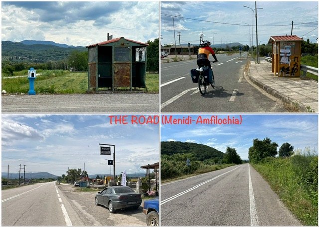 Another tough day in front of us but this morning we can’t get out fast enough from this dump, barely touching the shady breakfast they offer. The first 25km are along the lagoon of Preveza but the sea-view is kept at the distance by the bushes. The road is large and has minimal traffic though the tarmac is ruined making the ride often bumpy. The landscape is not that exciting, with the road coasted by uncultivated land or by olive and fruit trees.