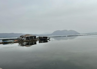 In the morning, the weather is cloudy and a light fog envelopes the lagoon, giving a very surreal atmosphere.