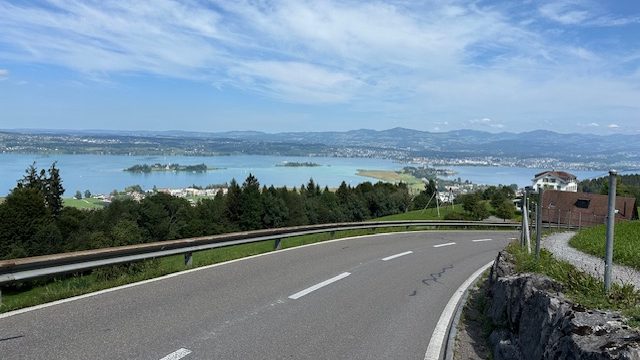 After briefly coasting the northern shores of the Sihlsee, the route heads north along an old pilgrim route part of the Via Jacobi and rich in religious sites such as chapels, crosses and memorials. It then starts a long descent with open views of Lake Zurich.