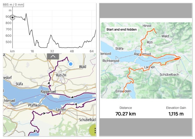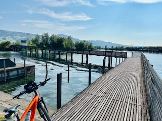 Rapperswil was founded in the 13th century and soon became an important Habsburg strategic base. It is now a large town with a lot of train connections (thus the official break between bike sections 99-09/10). Its old quarter is also very picturesque, famously decorated with roses of all different species. And of course I can’t resist a bike uphill to the old Castle. From there one can have a superb panorama on Lake Zurich and the surrounding peaks .