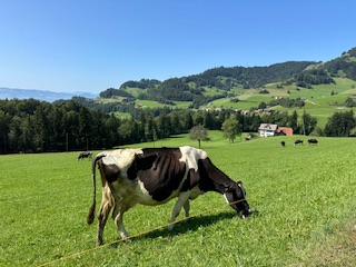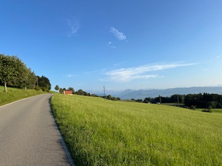 But the day is over and I retire to a nice country hotel in Breitenmatt, along the route. This sits isolated on a hill surrounded by countryside and with a magnificent panorama on mountains and lake. In the evening , I can still hear cows’ bells !