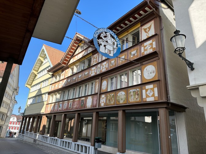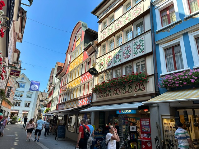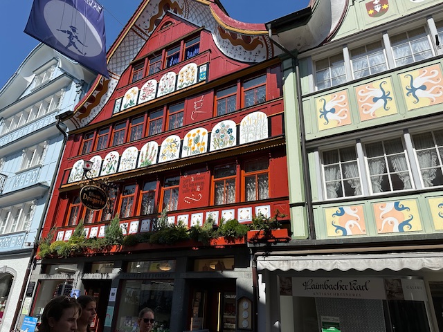 And then I arrive at the fairytale and very touristic village of Appenzell, with its colorful wooden houses and craft shops, resembling a doll village (See also 4:01). The façades are just a feast for the eyes, with different colors and decorated panels.