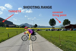 And then, as I continue in the idyllic countryside, I hear rifle shots at regular intervals. I think that there must be a shooting range nearby, but I never thought, in my wildest imagination, that the road I was biking on would pass right in the middle of it !!!!!!!!!!!
