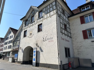 At last I arrive in Altstätten at my self-check-in Hotel. And what a surprise! The Untertor self-service Hotel is none other than the 16th century town gate, restored and converted for lodging! The check-in is seamless via an easy-to-use machine that will distribute your room key. The inside of the Hotel has maintained the timber structure and its medieval aura. The only issue is that the floors are screeching so if someone walks around at night, you may woke up.