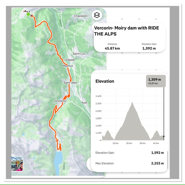 STATS: Vercorin (1,300m) to Moiry dam (2,250m) and back, total 46km and 1,600m elevation gain.